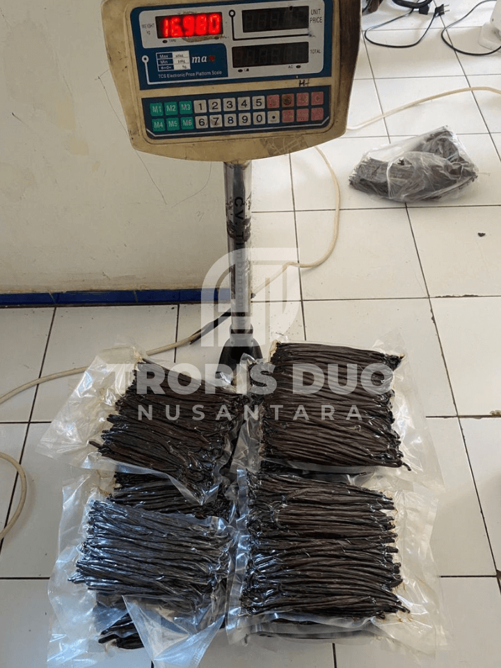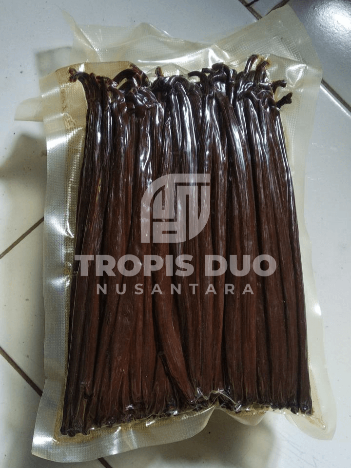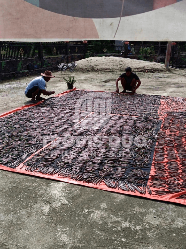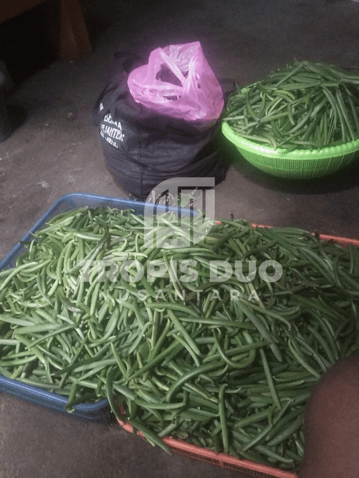 The process of making quality Vanilla takes quite a long time, which is around 13 to 15 months. With the fertilization process between stamens & pistils (pollination) assisted manually by our experienced farmers, with great care and carried out very carefully, for each flower stem. So that it produces one fresh Vanilla bean which is ready to entering the next processing process.