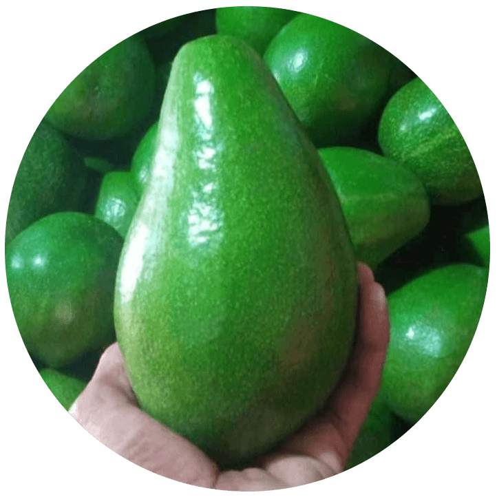 This fruit is 3 times larger than the usual avocado, the weight of one fruit can reach 0.8 Kgs to 2 Kgs. This variety has a denser, softer and more pulpy fruit flesh texture.